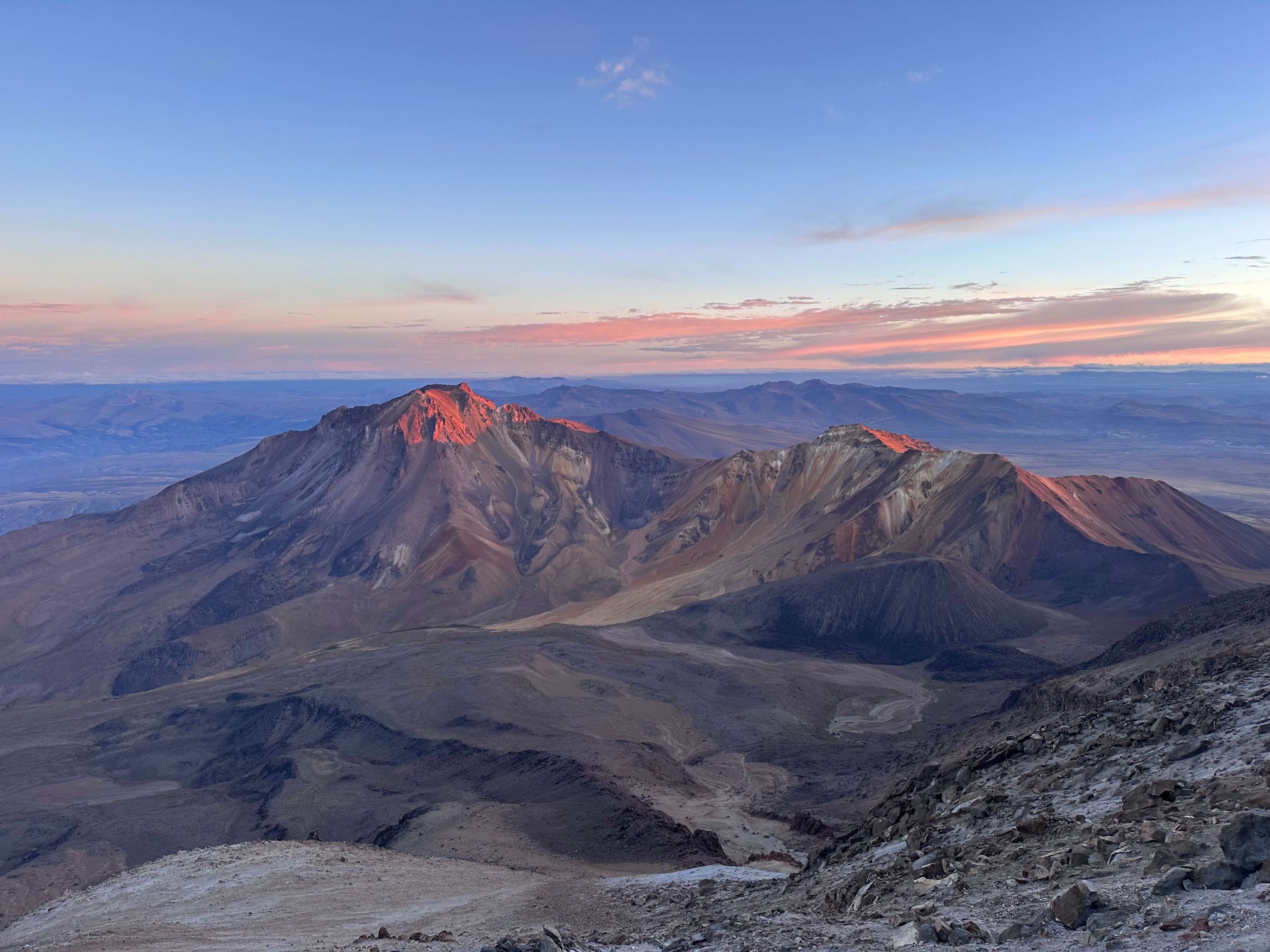 In the off-season, guided trips are only on Saturdays. I was limited on time, so I had to choose one. Both peaks are non-technical, and being in the desert they rarely have snow. Misti has a classic volcanic cone and active crater, while Chachani is a rocky peak with better views. I chose Chachani for the extra height, aiding my acclimatisation for Aconcagua next month, and building on what I had done on the Ecuador Volcanoes, and hikes in Peru like the Santa Cruz Trek.
