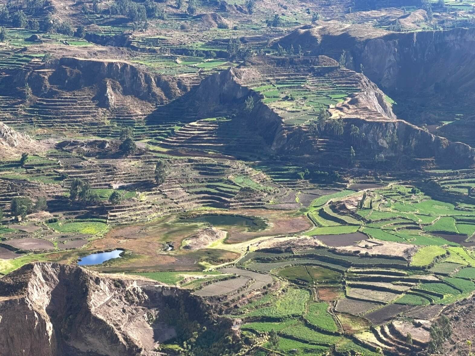 8,000 years ago, the Cabanas & Collaguas settled in a deep canyon that had a reliable river and shade from its cliffs. They built irrigation systems and agricultural terraces that are still used today. 600 years ago, the Incan Empire added more advanced farms and food storage warehouses, known as colcas. 400 years ago, the Spanish exploited local labour, leading to small villages and churches. Now free from colonial rule, the local people are proud of their traditions in agriculture and textiles. The area is studied for how well preserved the culture remains.