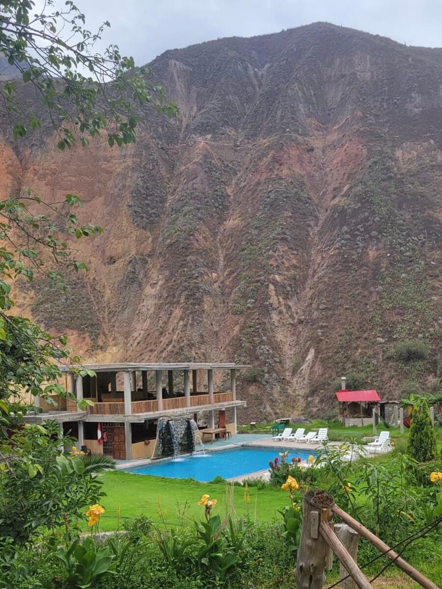 I passed the small communities set around hardy shrubs and cactus, in between which it was all scorching desert. Next was a steep ascent to a condor statue and viewpoint, then a long descent to Sangalle. I unknowingly passed Kevin here, taking a steep trail while he opted for zig-zags. Approaching the village, everything is green, with beautiful bridges over the rapids. I accidentally checked into the wrong hotel, and only after showering realised, but no harm done and I walked back up through the village where I found Kevin in the correct one.