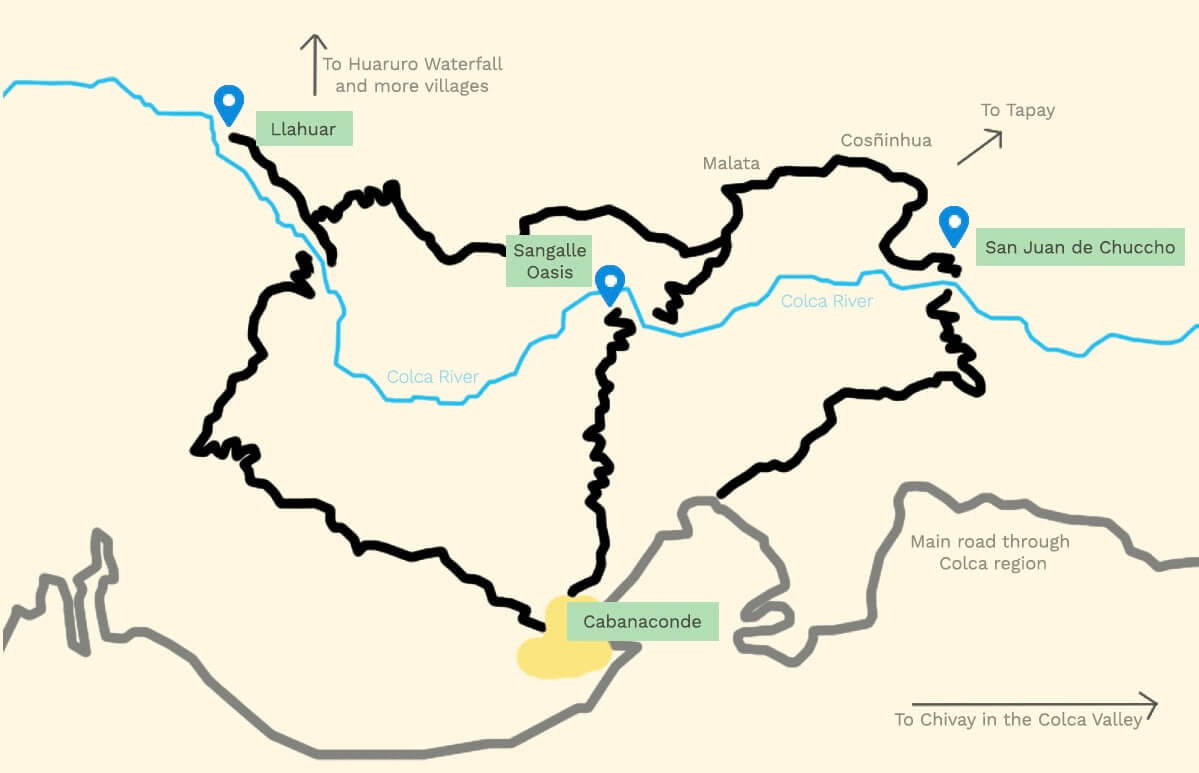 The hike always starts in Cabanaconde, and is usually 3 days. Guided trips do the overcrowded east loop; sleeping in San Juan de Chucco & Sangalle. The west loop is more authentic, staying in Llahuar & Sangalle. Both share the same last day, walking directly up a 1,000m cliff back to Cabanaconde. This is perfect for hiking independently, and Kevin made it his first thru-hike doing the 3 day west loop solo.