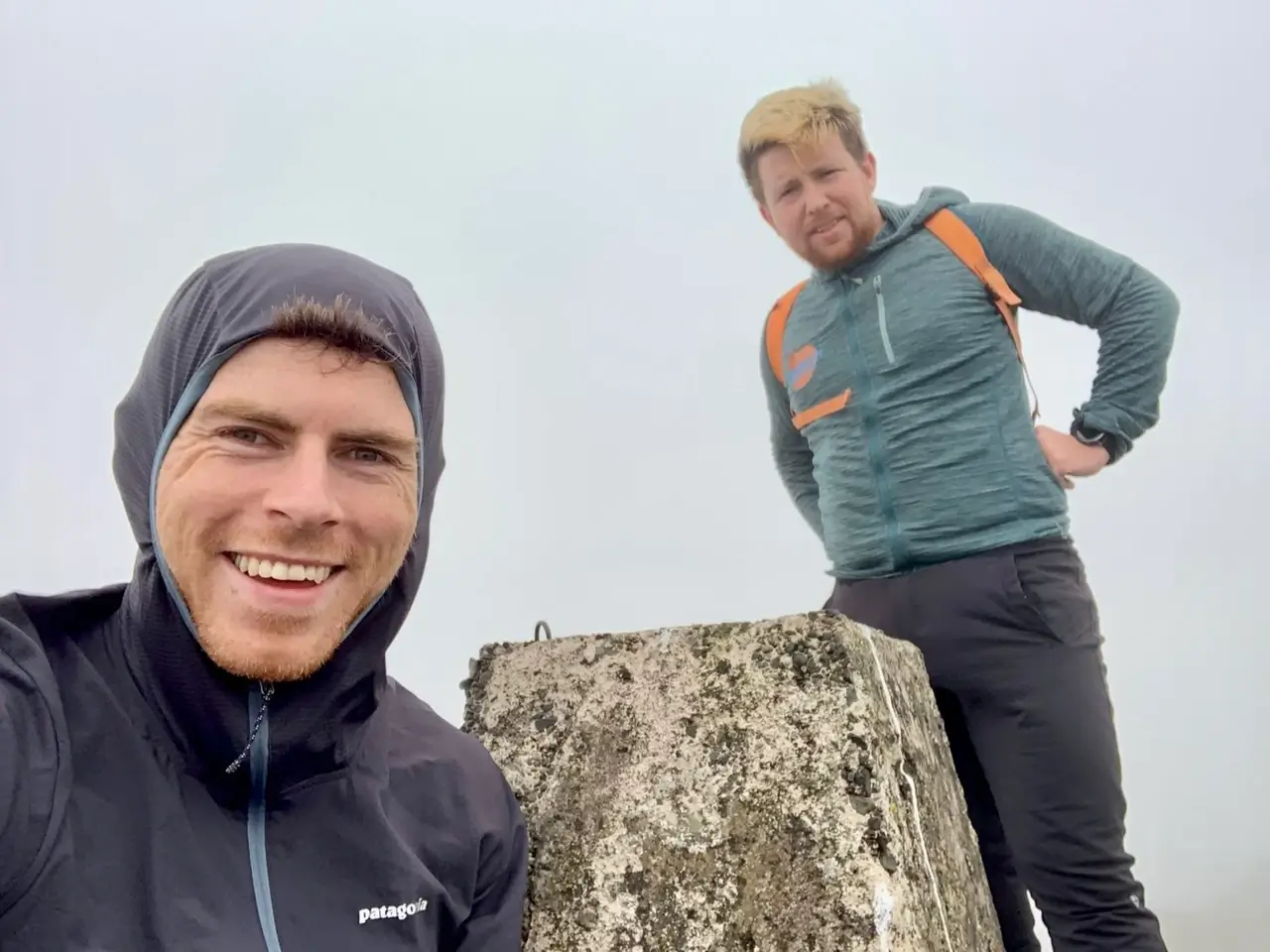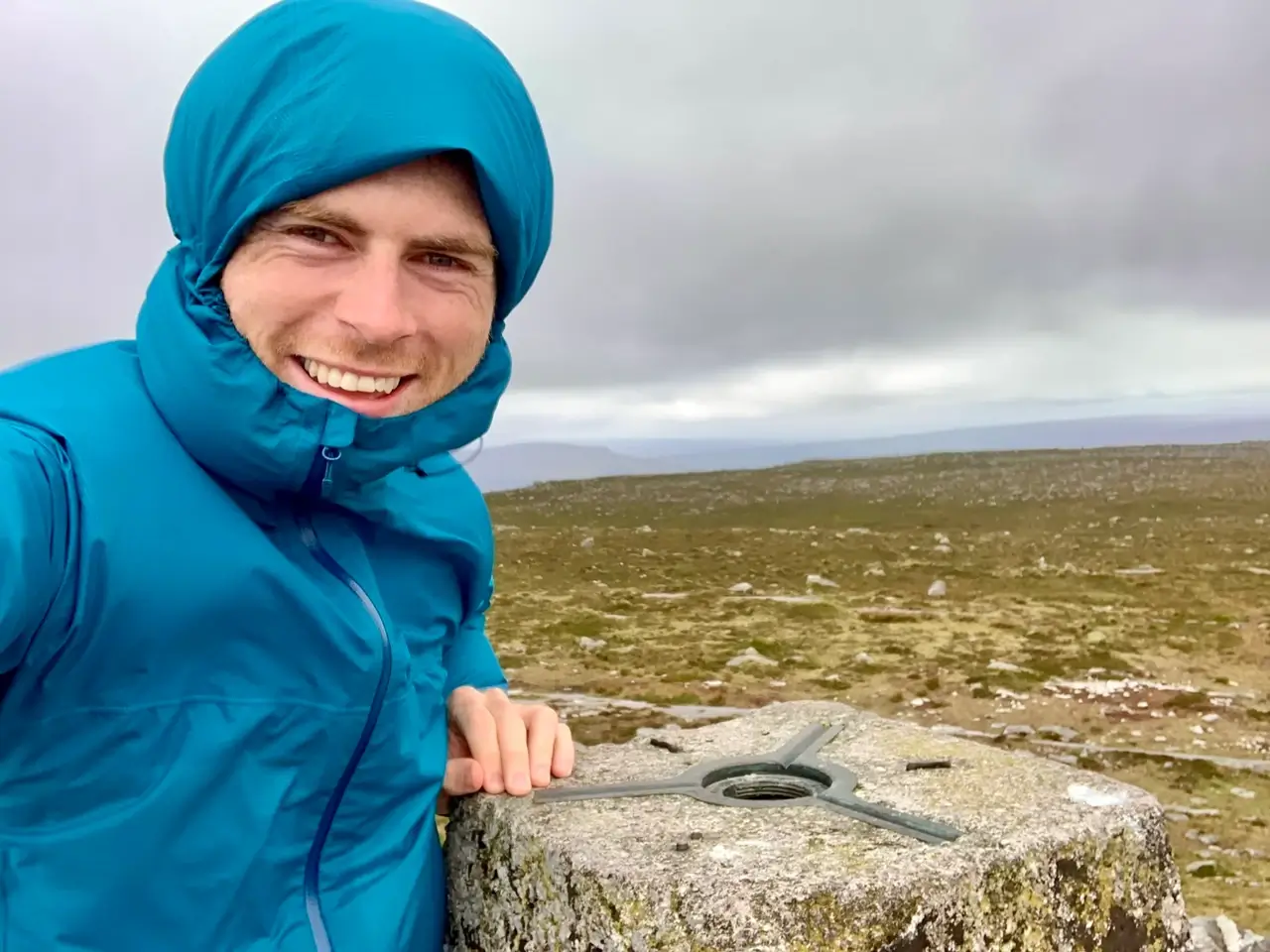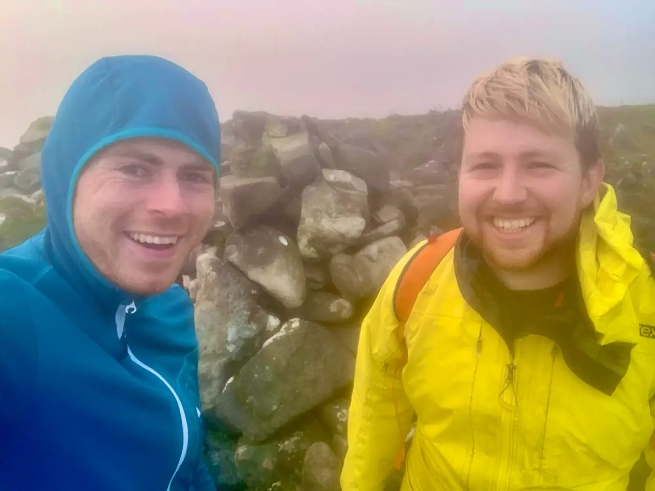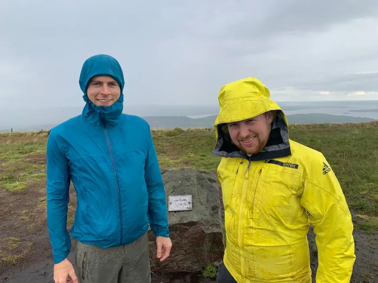 Me oh my. The storm raged on and climbing Sawel meant trudging straight through water, over and over and over again. We were soaked. It was amazing how wet this hill could be for how steep it was. False peak after false peak, each section wetter than the last until eventually we pushed through strong winds to summit at 11:30am. Northern Ireland done and onto the final climb.