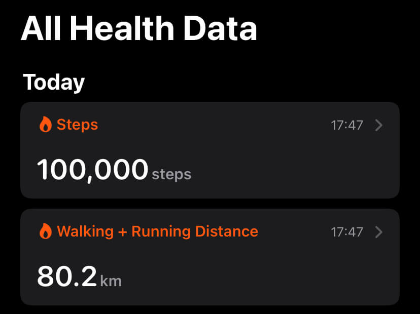 Having seen this challenge online, it was straight onto my bucket list. It’s so straightforward that you could almost think it’s easy. A mistake I made, but it definitely is not! I read some interesting accounts, including a 70 year old who trained for months and succeeded. The biggest lesson was to start at midnight! No matter how confident you are, it’s an endurance event and anything can happen. You don’t want to be at 97,000 steps the following midnight because you started at 4:00am; like one person I read about.