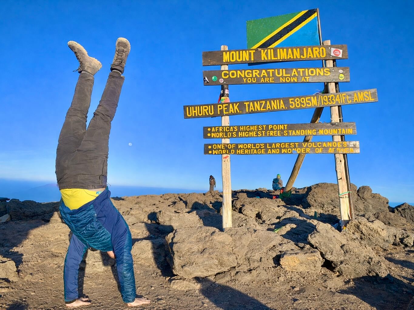Uhuru Peak was different than I expected. As if all I knew was an image of a sign but now the details were filling in with all the surreal views and emotions. It was overwhelming to have all the stress instantly lift and to share that moment with Seán. We took our photos and sat for a while, thanking the guides and taking it in. Both of us celebrate in different ways, me getting my handstand photo and him having a smoke with the two Belgian lads (after considerable trouble getting a lighter to work). It’s not recommended to stay more than 15mins so after clearly breaking that rule we got going.