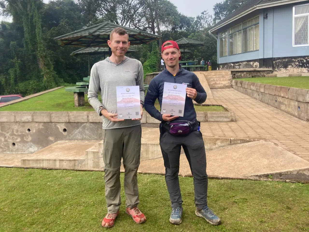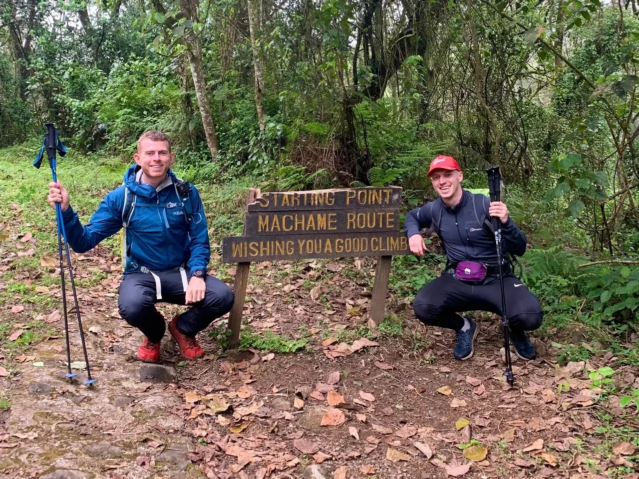 It was an early start when we got up for a final breakfast. The two hours of rainforest flew by, mostly running as all the porters did. Everyone was excited to get home to their families, or in our case just a shower! We saw monkeys in the trees again, life which was non existent a day before. Through a gap in the forest we had a view of the summit, looking up and imagining all the tiny hikers struggling their way to the top. Rounding a final corner we saw the last sign at Mweka Gate. It read; ‘Congratulations, Bon Voyage’.