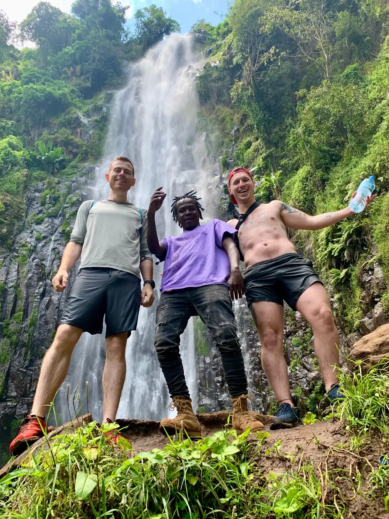 Elisante arranged a ridiculously discounted tour of Materuni village for that afternoon, insisting that we can’t miss his famous homeplace. A driver named Emmanuel brought us up the scenic road to Kilimanjaro’s foothills where green, lush landscapes reminded me of the banks of the Nile. First a hike to swim under Materuni waterfall which was unbelievable, meeting tourists and locals on the way. Then to a coffee plantation where we ground and brewed coffee from scratch, using original tools and singing local songs.