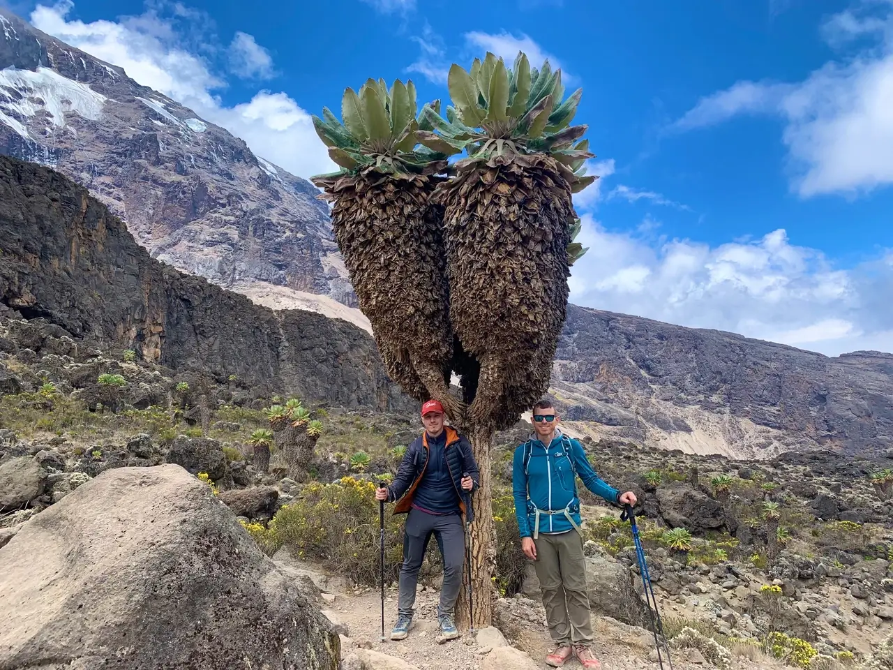 The lava tower is a huge piece of rock formed by a localised escape of lava in the past. We got photos and had our lunch at its base, moving on just as wind and clouds began to roll in. There’s a plaque for Irish mountaineer Ian McKeever who was killed by a lightning strike here in 2013. He once held the record for fastest time to complete the Seven Summits (156 days) and was quoted saying “if you only do one climb in your entire life, make it Kilimanjaro”.