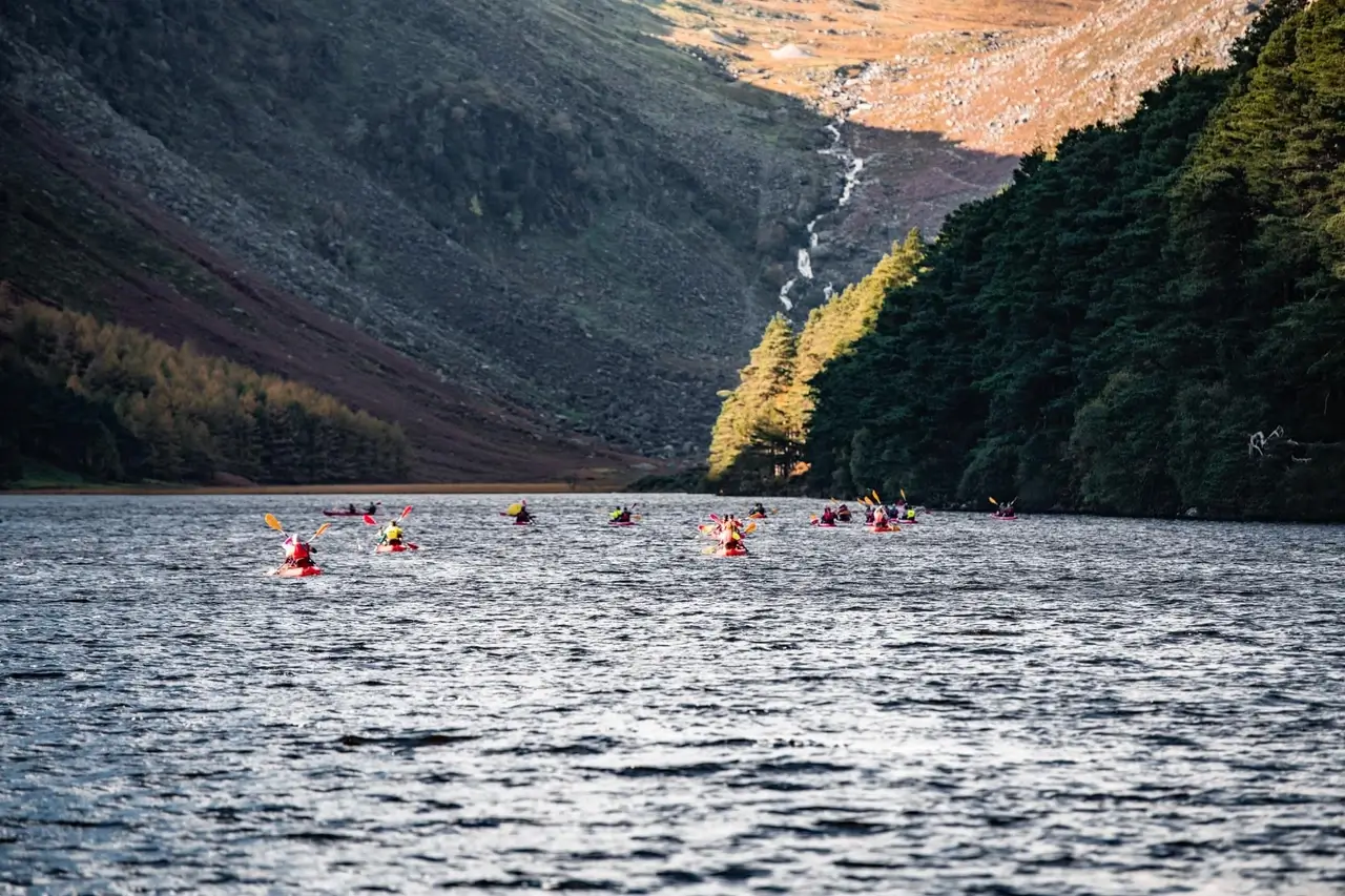 Reaching the lake it was Sue Doyle, an old friend of mine, putting on the buoyancy aids. I found the energy to say hello and hopped in a boat. It’s a short loop in double sit on tops with the nearest person. As a kayaker I would like it solo and longer, but this day 1km was enough. We chatted as we passed out a lot of others, my partner confused by our speed.