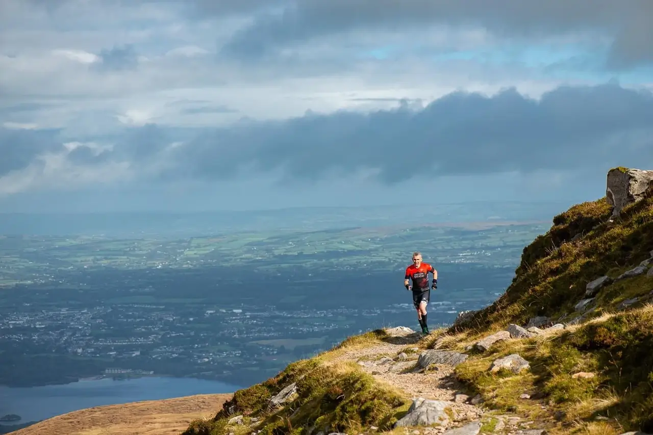 I felt great racking my bike beside Torc waterfall. It was a nice run to the kayaks and I had a protein bar on the way. The 1km paddle was fast as always, just enough to soak your shoes! Now the true race begins with a final 18.5km run up Mangerton mountian.
