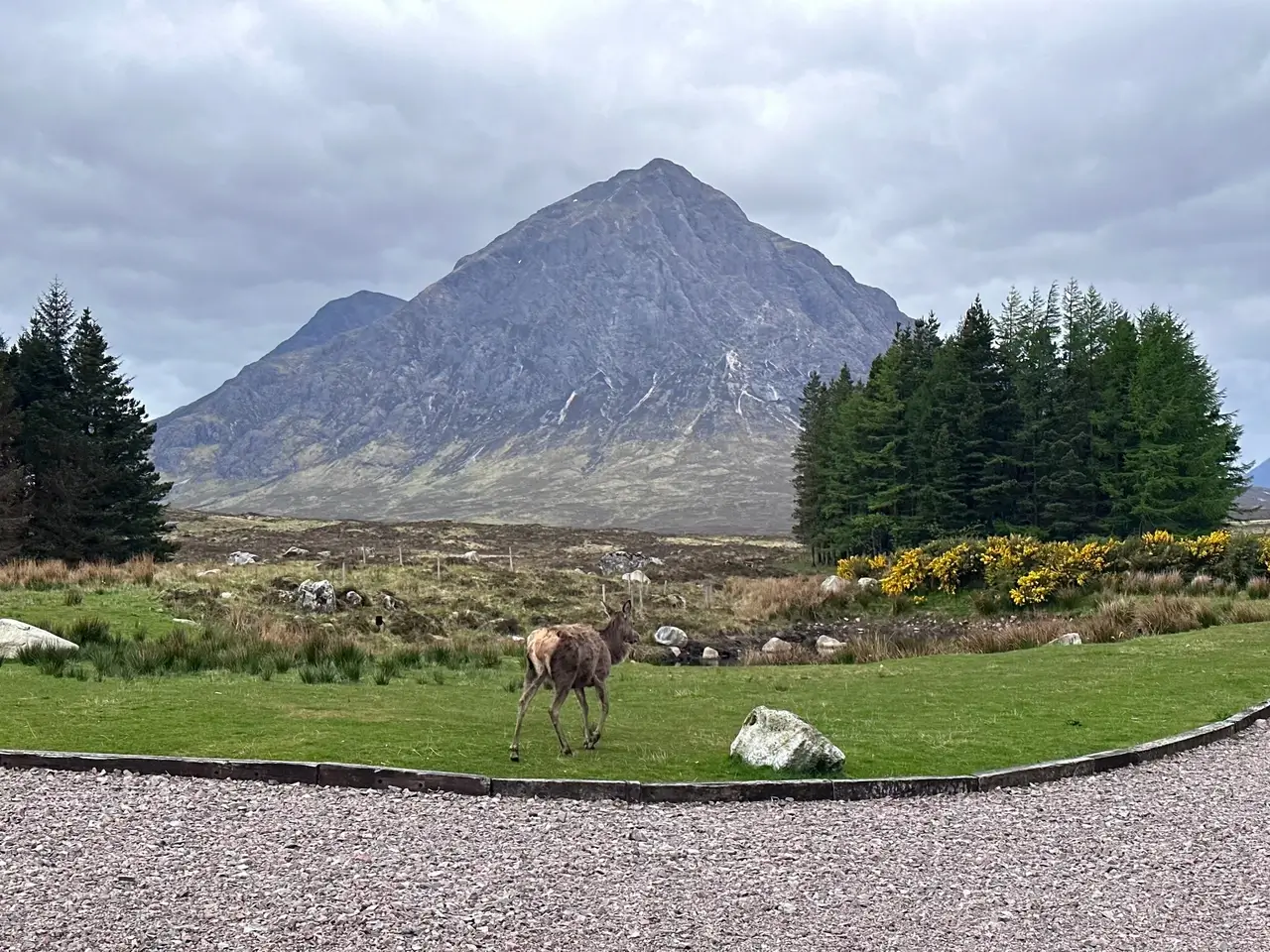 A strong wind blew from one of the valleys ahead which had us happy to arrive at the Kingshouse Hotel by lunchtime. I set up my tent outside where I’d planned to camp and went in to join them for lunch. They told stories of world travel, climbing the Colorado 14’ers, and of their son who climbed Aconcagua this year (which I had lots of questions about). That evening I was reunited with Eddy for dinner, drinks, chocolate and card games. We watched deer running around the fields, and camped under a sky full of stars.