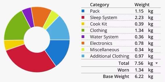Full Gearlist on Lighterpack