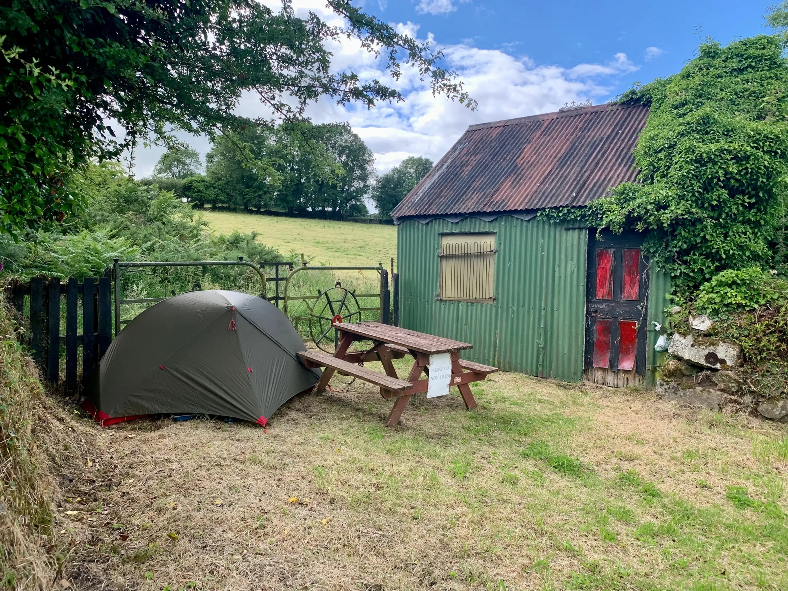 When I passed the Dying Cow pub, I was ready to setup camp. It looked to be road for a while so I opted for one of the worst ‘stealth camping’ locations I’ve ever chosen. It was flat and comfy though, with a picnic bench for cooking. On paper it was perfect, but beside a surprisingly busy road. Did the job but I wouldn’t pick it again.